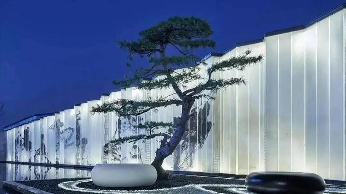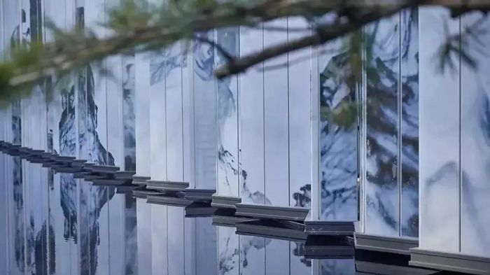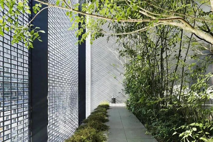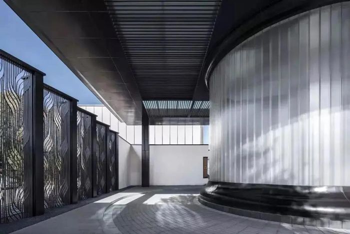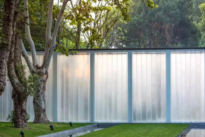 簡(jiǎn)單的垂直長(zhǎng)條紋,延伸并折射被阻擋的物體,給人垂直拉伸的視覺(jué)體驗(yàn)。